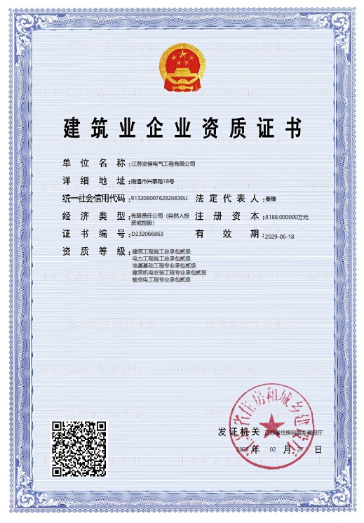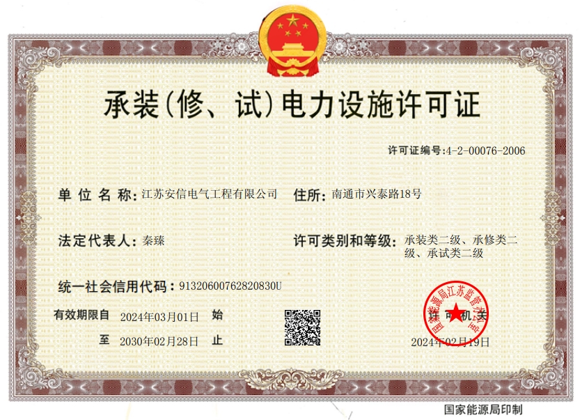 承裝二級(jí)、承修二級(jí)、承試二級(jí),電力工程施工總承包二級(jí),輸變電工程專業(yè)承包二級(jí),建筑工程施工總承包二級(jí),建筑機(jī)電安裝專業(yè)承包二級(jí),地基基礎(chǔ)專業(yè)承包二級(jí)